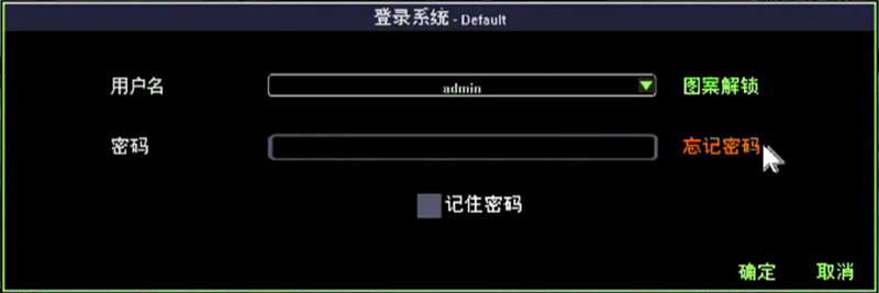 1.點擊硬盤錄像機的登錄界面的“忘記密碼”;