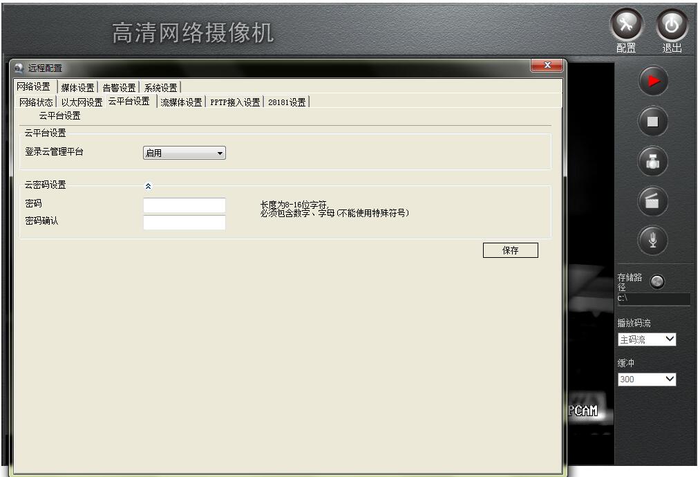 方法2.在電腦客戶客戶端內將需要激活云ID的網絡監控攝像機添加到設備列表,然后在網絡攝像機畫面右鍵選擇遠程配置網絡設置》云平臺設置中啟用云平臺管理,并設置云密碼(8-16位英文+數字組合)即可;