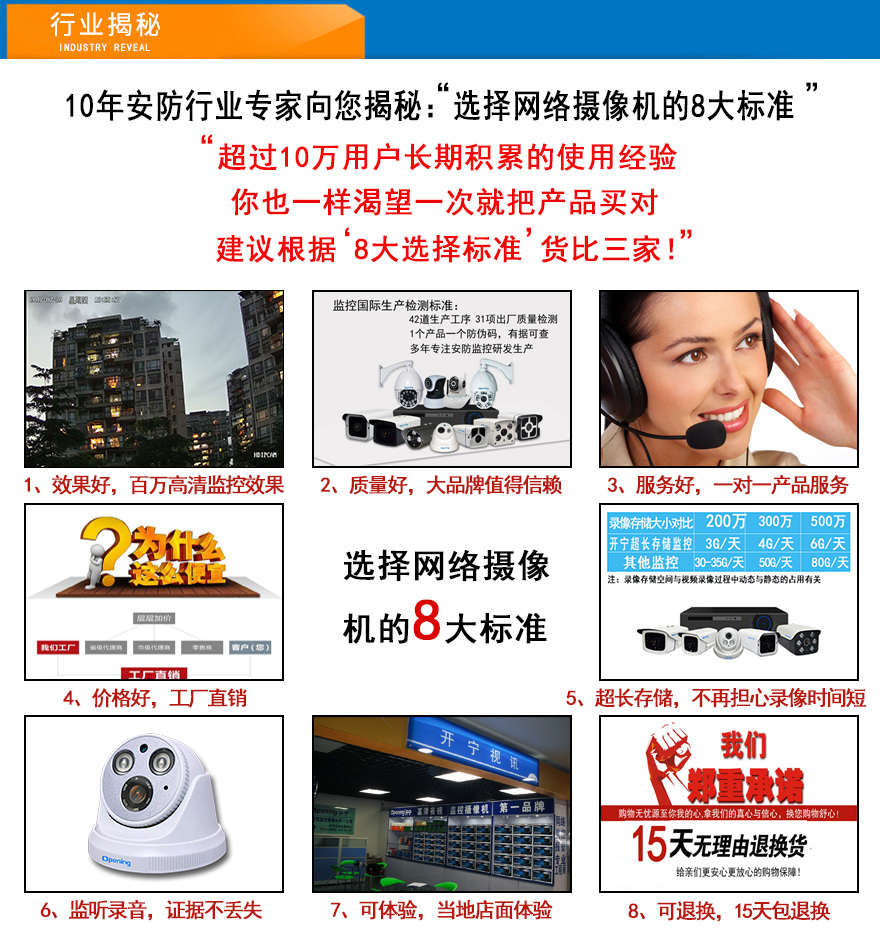 ★超長存儲、1080P/12966P/1944P(200萬/300萬/500萬)、智能高清、全網通、低碼流、低照度、低功耗、H.264+/H.265+雙碼流、防靜電、防浪涌、過壓保護、移動偵測報警。