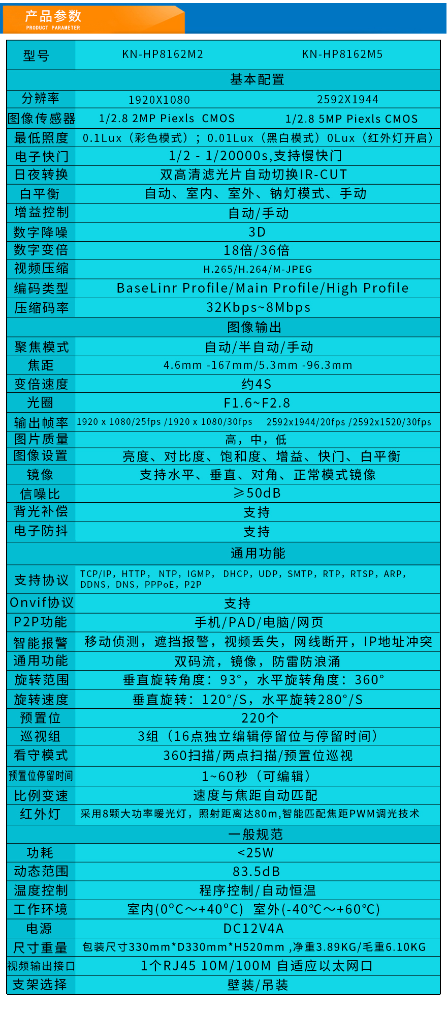 - 黑光全彩智能球機(jī) KN-HP8162M2