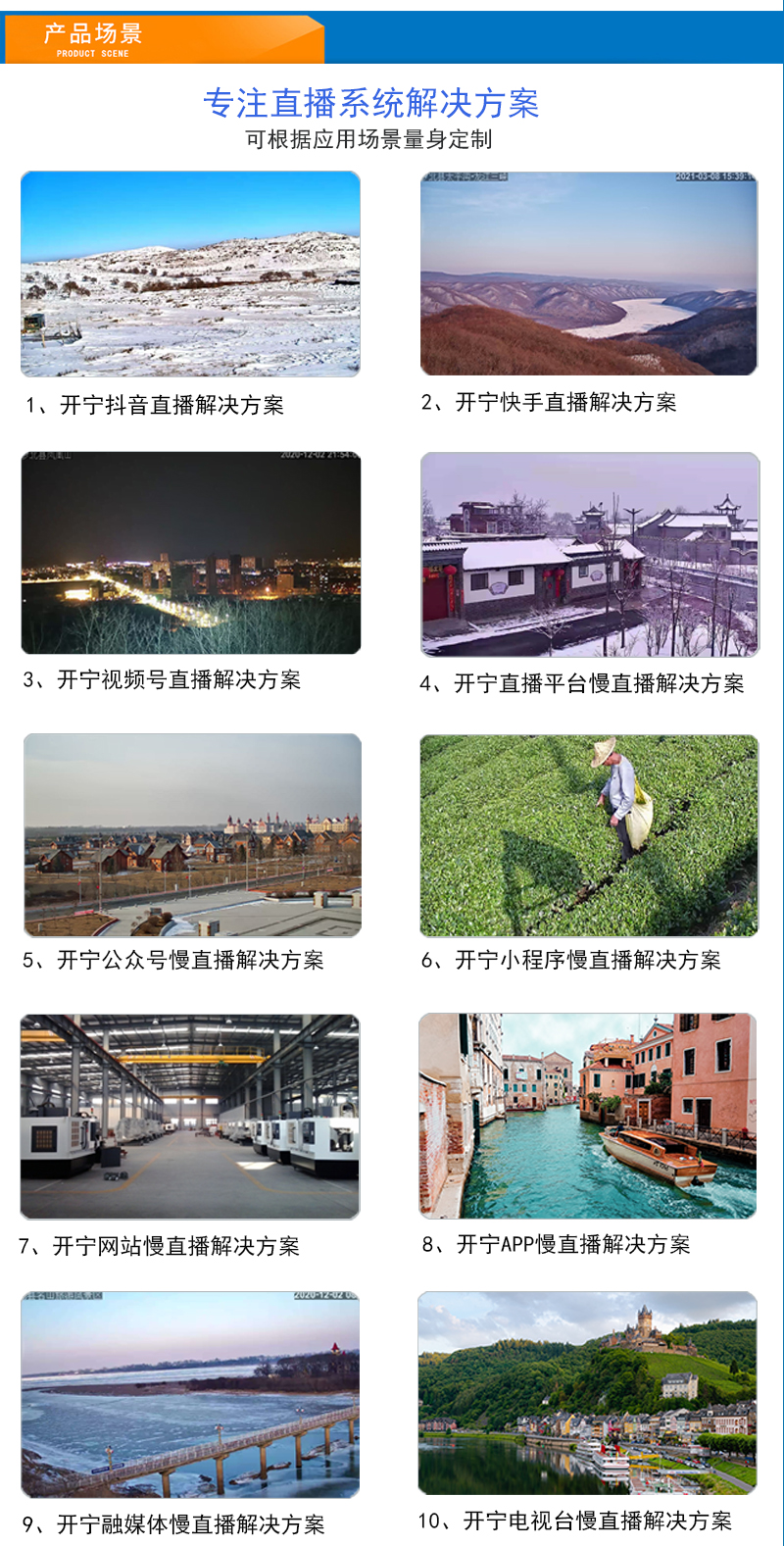 5、明廚亮灶.透明裝修.智慧農業.食品溯源.實景中國.在線驗廠.店鋪直播.展會直播等實時監控直播;
