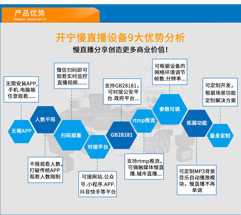4、不僅可以監控錄像,還可以實時慢直播分享創造更多商業價值;