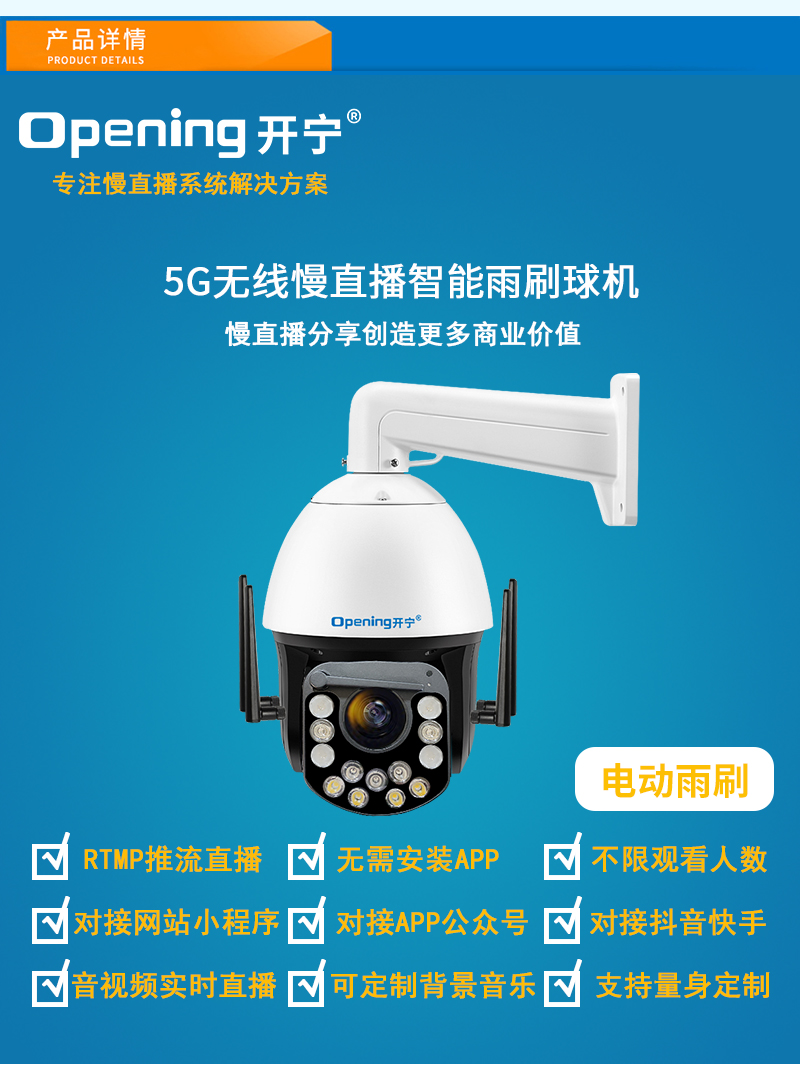 - 5G6寸全彩慢直播帶雨刷球機